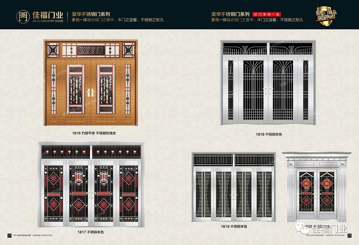 本公司成立于2004年,已有19年的生產進戶門的經驗積累。公司現擁有鋼質非標門生產線、標門生產線及不銹鋼門三條生產線,我公司專業設計、制造、銷售鋼質系列進戶門、防盜門、不銹鋼門等產品,擁有“宇佳?盈福”和“佳有福”、“家福.興隆”三個自主品牌和產品系列。公司引進了先進的生產技術,配置了成龍配套的現代化生產流水線。產品工藝成熟,質量上乘。同時,公司廣納賢才,聚集了一批具有開拓創新精神的各類高級管理和技術人才,建立了一套先進的管理模式。
